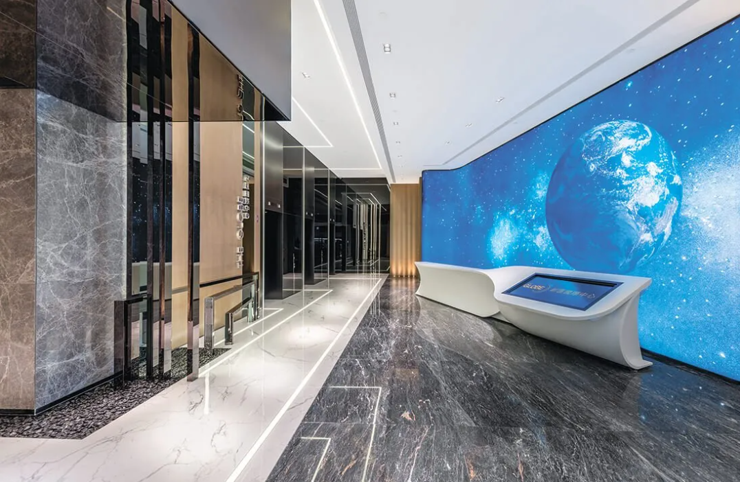 The Globe, 79 Wing Hong Street, Cheung Sha Wan, is a factory revitalization project with a total project area of over 3,000 square feet. The lobby uses Perth Gray Marble for the walls and Saint Laurent Gray Marble for the floor; the walls in other locations are made of Escort Dolomite.