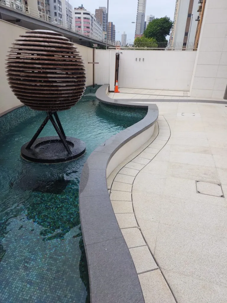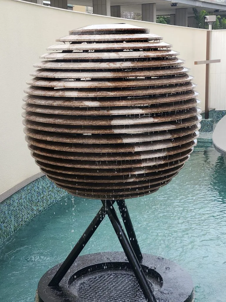 The architect was ingenious and designed a unique flowing water globe, which is made of stone blocks layer by layer like stairs. The stone surface is sandblasted to create a 3D earth surface, showing the five oceans and seven continents!